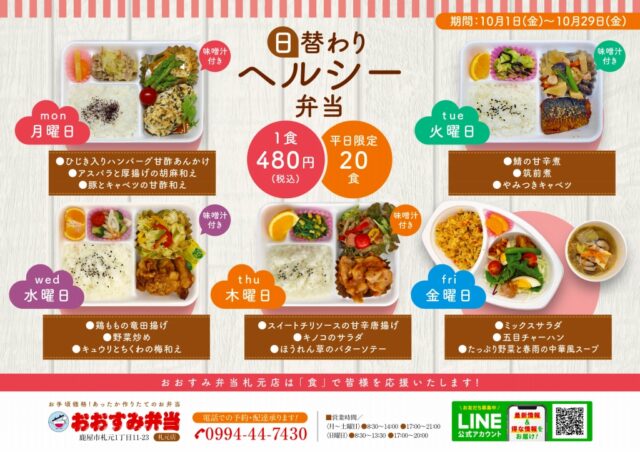 令和3年10月の日替わりヘルシー弁当のお知らせ