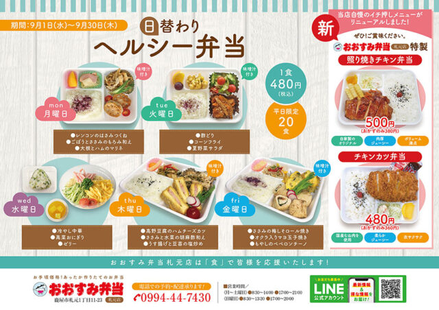 令和3年9月の日替わりヘルシー弁当のお知らせ