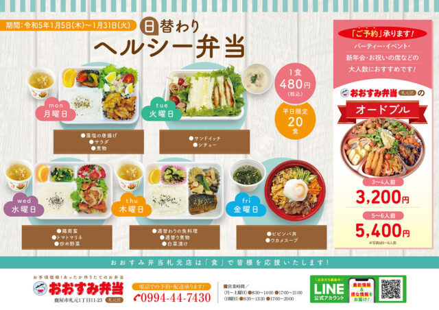 令和5年1月の日替わりヘルシー弁当のお知らせ