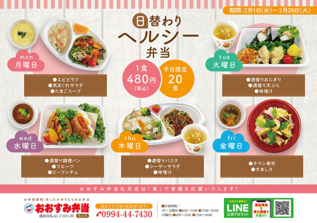 令和5年2月の日替わりヘルシー弁当のお知らせです